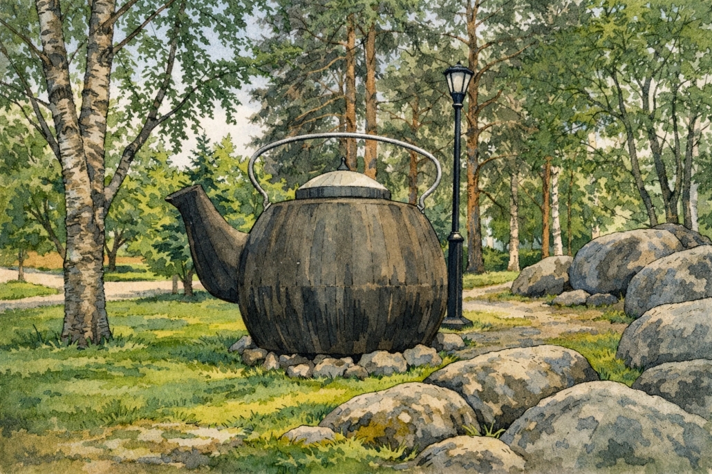 Talkoopannu kuvaa kylässä aina vallinnutta talkoohenkeä. Edvin Hevonkoski halusi rakentaa kylään niin suuren kahvipannun, että kahvia riittää kaikille kyläläisille.
